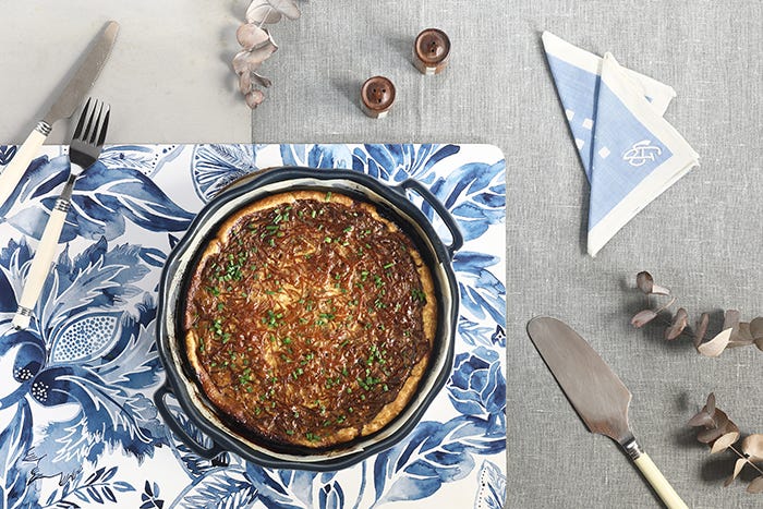 Esta semana cocinamos una tarta de sopa de cebolla a la salvia, un plato ideal para una comida o cena informal. La masa brisa encierra un relleno que recuerda a la clásica sopa de cebolla francesa.