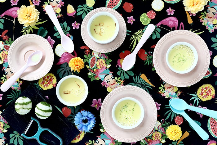 Chocolate blanco caliente en dos versiones, aromatizado con lima, azafrán o jengibre. Es la receta de la semana. Diferente, dulce, con recuerdos a deseos secretos de mi infancia.