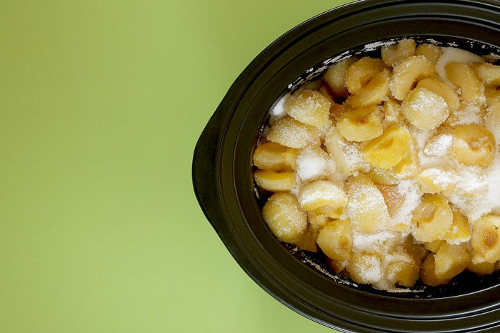 Coloca la fruta en la olla con el azúcar. Exprime el limón y añade el zumo a la olla.