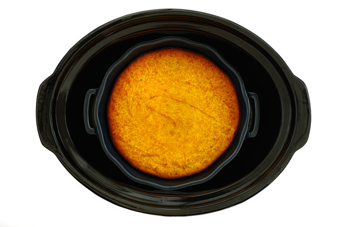Coloca el molde vacío en el slow cooker y vierte la mezcla en el molde.