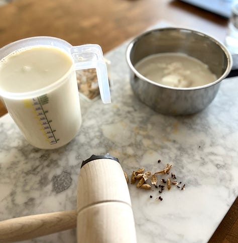 Ya sabes: Marta dice cardamomo, pero si te sale de la vaina, puedes infusionar la mezcla de leche y nata con una rama de canela o con media vaina de vainilla abierta y raspada. La mezcla de especias para pumpkin pie (canela, nuez moscada, jengibre, clavo y pimienta de Jamaica) también tiene lo suyo.
