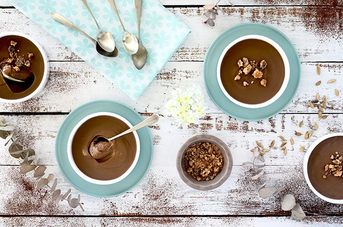 Cacao para el punto amargo, poco azúcar para no empalagar, cardamomo para realzar y diferenciar. Unas natillas de chocolate tan suculentas que son casi casi una mousse.