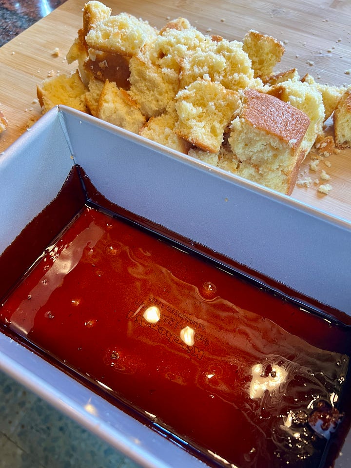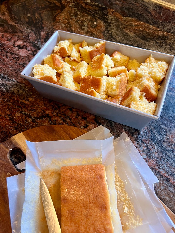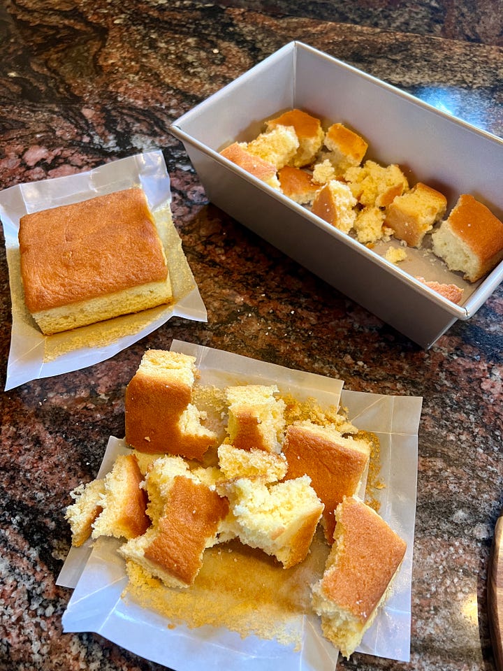 Trocea los sobaos (o el dulce que utilices) en trozos gruesos.