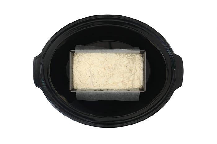 Vierte la mezcla en el molde, colócalo en el recipiente, pon un trapo debajo de la tapa y cocina durante 2 horas en ALTA o hasta que el pastel esté perfectamente cocinado.