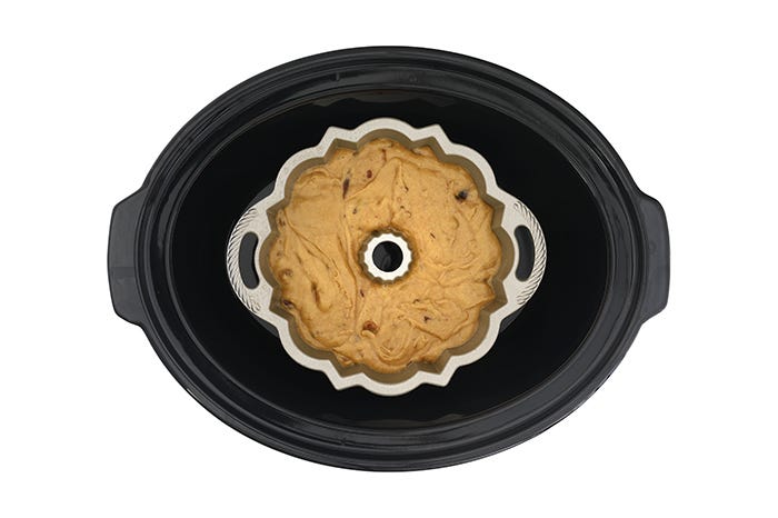 Coloca el molde en el recipiente de la crock pot, pon un paño sobre el slow cooker y ajusta la tapa encima.