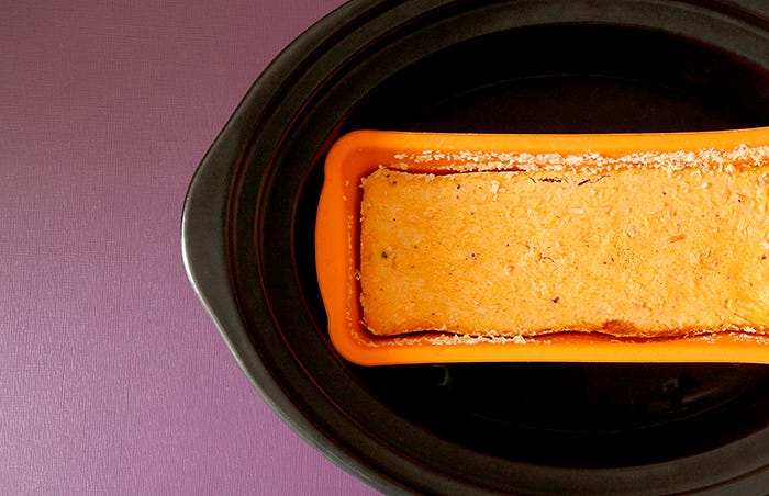 Comprueba que el molde cabe sin problemas en el recipiente de tu slow cooker; si no tienes un molde adecuado, hazte con uno, seguro que le acabas sacando partido.