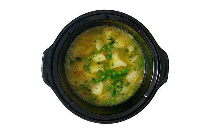 Para tener éxito con un guiso cocinado en olla de cocción lenta, hay que escoger bien las patatas. Elige nuevas o variedades que sean aptas para guisar como Monalisa o Kennebec, por ejemplo.