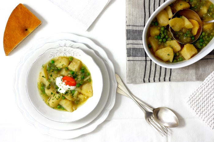 Estas patatas con guisantes se disfrutan especialmente cuando los guisantes están en temporada; es una legumbre fresca, fácil de desgranar, y no te llevará mucho tiempo tener los guisantes listos para ponerlos en el guiso, pero también puedes usarlos congelados si no los encuentras o ya ha pasado la temporada. ¡Buen apetito!