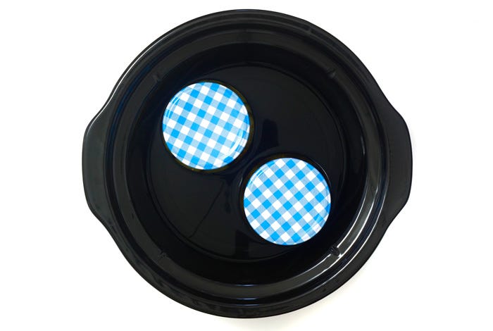 Coloca los tarros en el slow coker, pon agua hasta que cubra la mitad de los recipientes y cocina durante 2 horas en ALTA.