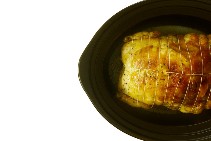Antes lo hacía en el horno y pensaba que salía muy bueno, pero después de cocinarlo en crock pot, he comprobado que el resultado es muy diferente: la carne de ave sale tierna y suave –el horno la seca con facilidad– y la cocción respeta la pieza, que apenas corre riesgo de romperse.