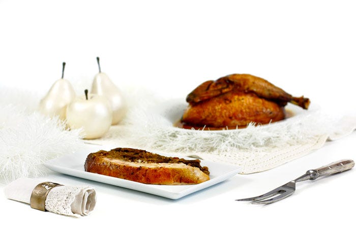 No lo puedo evitar, para mí la Navidad está íntimamente ligada a las recetas de aves rellenas. Me encanta cómo con distintos ingredientes, más o menos sencillos, se puede montar un panorama de sabores diferente en cada elaboración. En esta ocasión le toca el turno al pan, pero al pan bueno: para hacer esta receta no vale un pan de barra ni un pan regulero: el valor y lo que marcará el carácter de este plato es el sabor del pan y su textura.