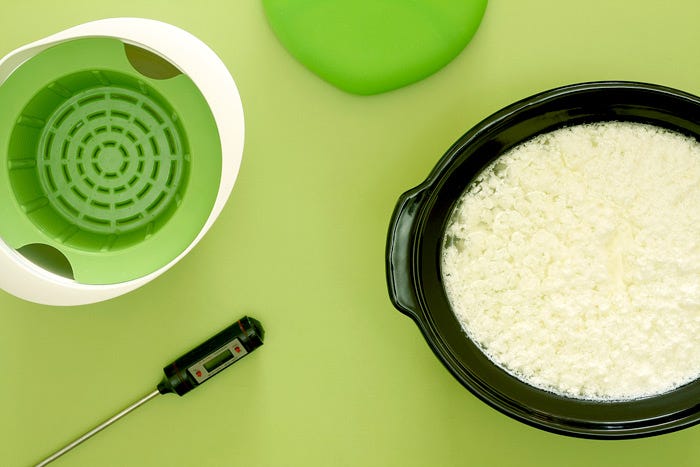 Caí en la cuenta de que podía utilizar el slow cooker para hacer queso fresco gracias a Carmen, de nuestra comunidad de Facebook, que tras un experimento de yogur fallido terminó con un queso fresco DIY en su nevera.
