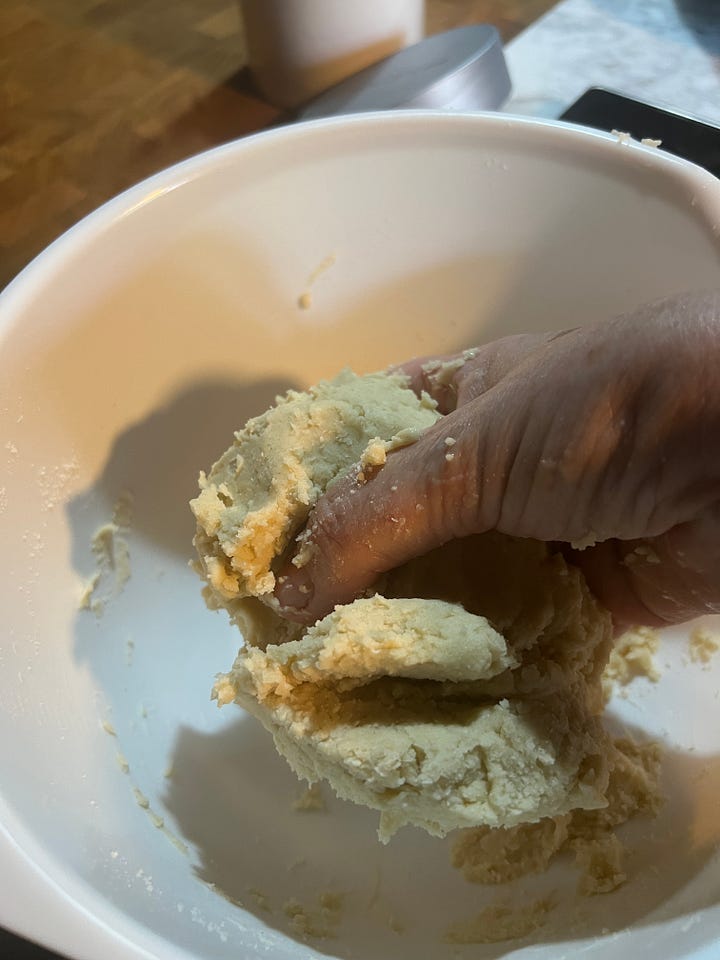Añade el huevo y la leche. Amasa hasta formar una bola homogénea que no debe pegarse a las manos.