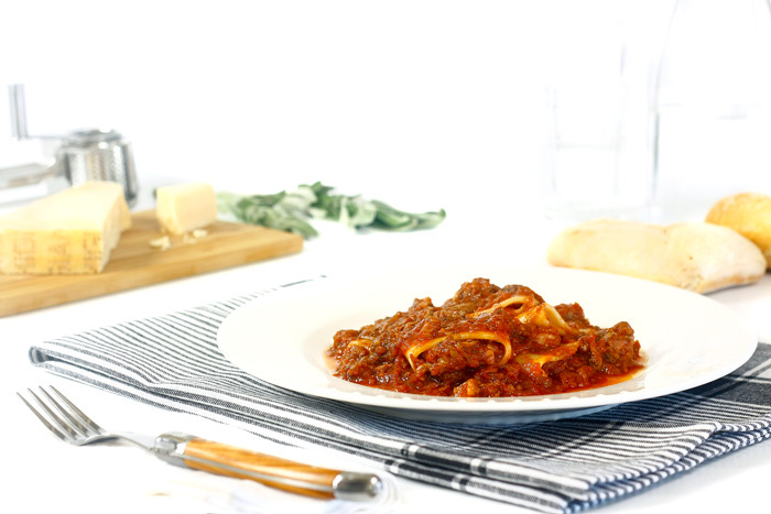 Créeme que cuando se prueba la manera correcta de cocinar la pasta no hay –afortunadamente– vuelta atrás. Esta receta de ragú napolitano es un buen comienzo para comprobarlo. Una salsa con sus buenos tropezones de carne y embutido, con su tomate cocinado lentamente –como requiere la receta original– que envuelve la pasta en un abrazo lleno de pasión y sabor.