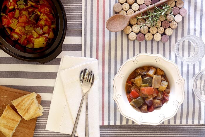 Qué fácil sería empezar esta receta comentando que este ratatouille me recuerda a la rata de la famosa película de Pixar del mismo nombre. Pero no, crockys, resulta que por una cosa o por la otra, aún no la he visto. No es que haya estado tan ocupada desde 2007 como para no sacar un par de horas y echar la tarde, que tiempo ha habido, pero sin querer he conseguido procrastinar con el tema como una campeona. Ha llegado el momento y voy a ponerle solución a la cosa. Palabrita.