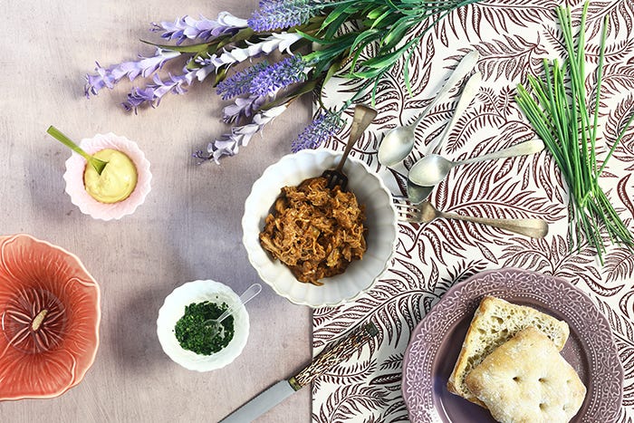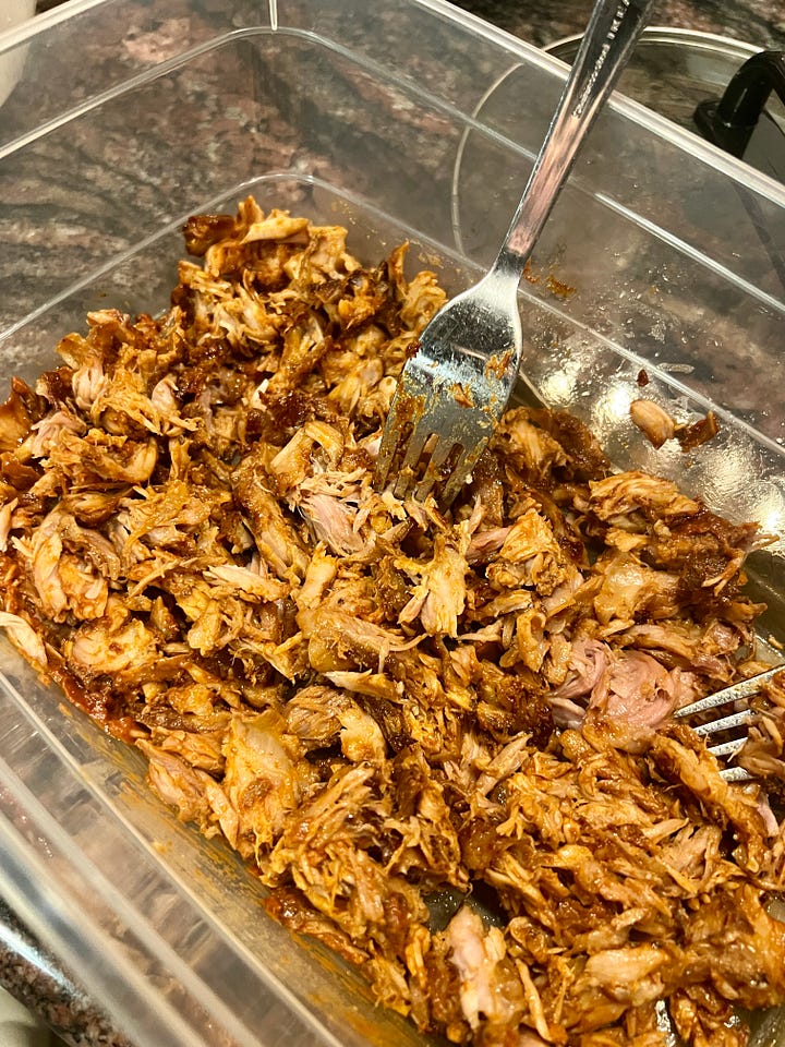 La pista me la dio el pulled pork. Quería hacer un relleno para empanadillas, empanadas, bocadillos o sandwiches que fuera muy fácil de preparar, sin una lista interminable de especias e ingredientes, hecho con una carne que se pudiera encontrar fácilmente en cualquier carnicería, y que fuera tierna y se desmigara bien.