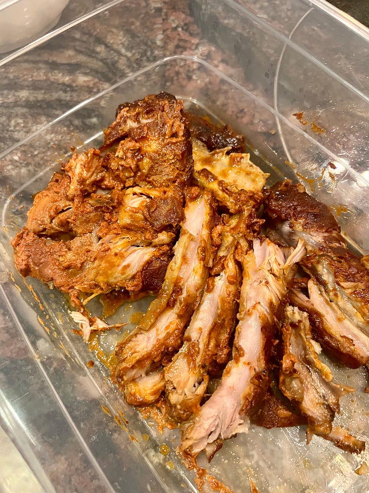 Para estos menesteres, la costilla de cerdo es una maravilla. Es más económica que la de ternera y se desmenuza fácilmente al alcanzar el punto óptimo de cocción.