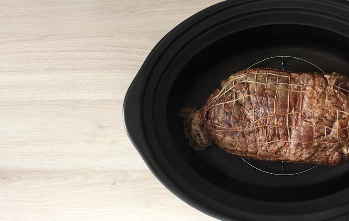 Entra de maravilla en un menú de verano. Como parte de la mesa de Navidad no tiene precio por la antelación de su preparación y porque no necesita estar caliente para servirlo; bendito bufé familiar. En sandwich es gloria pura. Es el roast beef o rosbif, un asado de carne que resulta muy fácil de hacer en la crock pot y que puede solucionarnos más de un menú de compromiso.