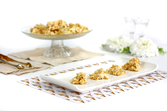 Rocas de chocolate blanco, almendras y jengibre