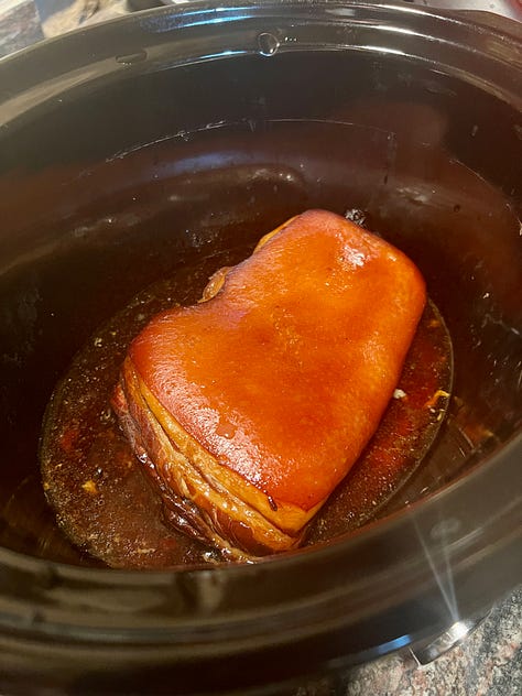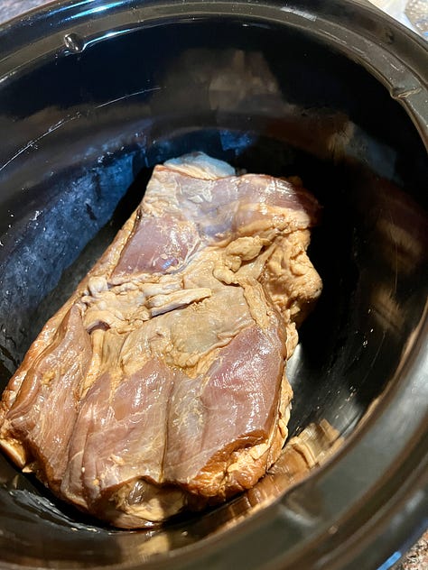 Pon la panceta en el slow cooker y cocina durante 5 horas en BAJA o hasta que la carne esté tierna y jugosa.