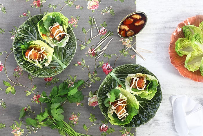 Si quieres ser fiel a la receta, usa la iceberg. Tiene muy mala fama pero es una lechuga tersa y con un mordisco crujiente interesante, muy adecuado para este tipo de elaboraciones que son para comer con las manos.