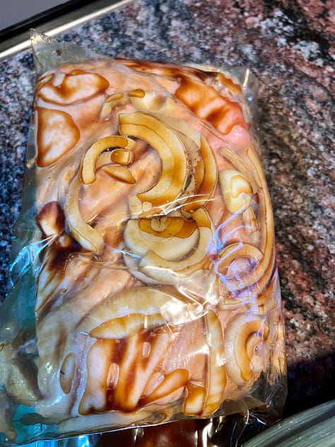 Ponla a marinar en el frigorífico durante 12 horas y dale la vuelta varias veces para que la marinada se distribuya bien.