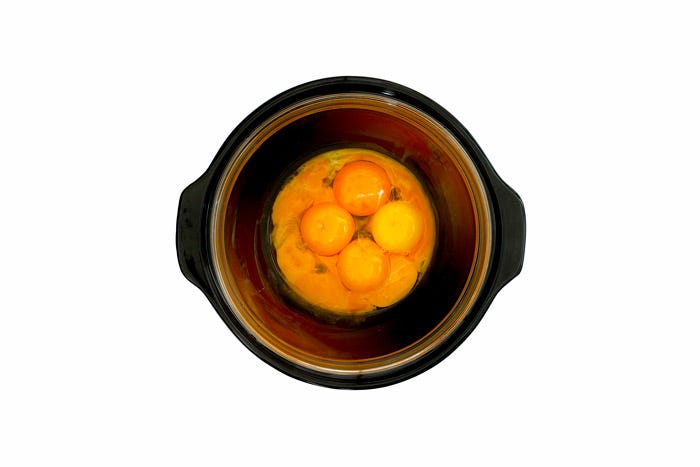 Para hacer esta receta usaremos el slow cooker como un baño María. Así nos aseguraremos un cocinado de las yemas suave y sin accidentes. Podremos batir sin miedo a que el agua hierva, borbotee y nos queme.