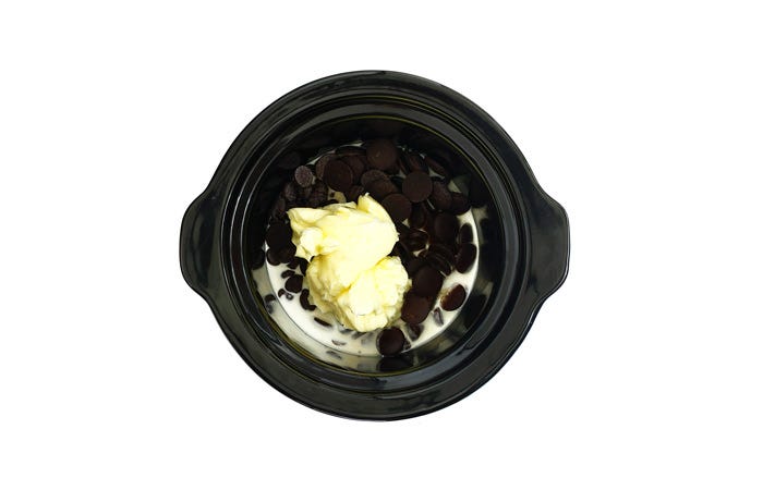 Es una receta perfecta para hacer en slow cooker: aprovechando el calor suave que emite la olla lenta, fundimos el chocolate sin riesgo de que se queme, se pase y coja malos sabores.