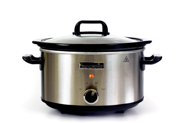 Un slow cooker es un electrodoméstico destinado únicamente a cocinar lentamente, sin ninguna otra funcionalidad. Se compone de una carcasa con conexión eléctrica, un recipiente y una tapa. Con una crock pot no podrás triturar, rallar, ni hacer batidos, porque no es un procesador de alimentos. La olla de cocción lenta tan solo cocina dentro de su recipiente a temperatura gradual y lenta.
