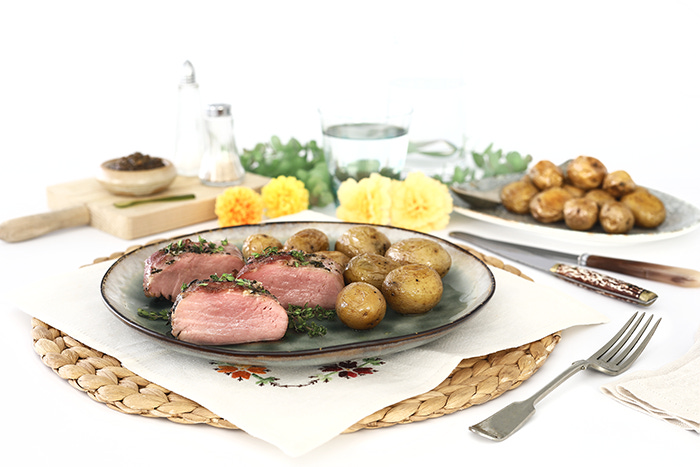 Si lo deseas, puedes evitar la vaporera y colocar el solomillo directamente sobre las patatas.
