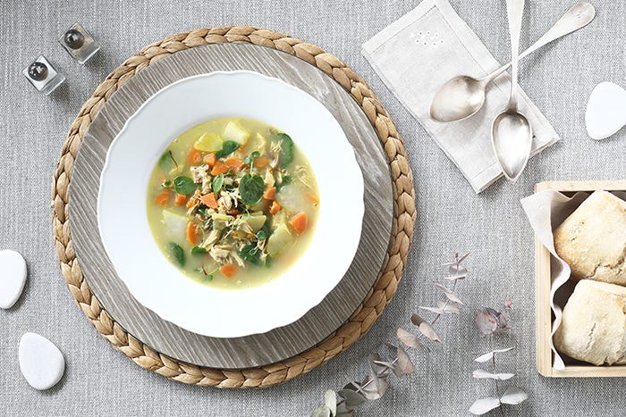 Esta sopa de pollo y verduras lleva años en mi archivo de programación. Al principio tenía la idea de que fuera una sopa de aprovechamiento hecha con los restos de aves de las comidas navideñas. No sé por qué, cada año la iba posponiendo. Quizá el año que viene por estas fechas llegue su momento. Veremos.