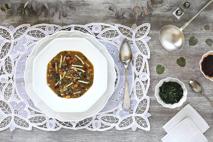 Sopa de lentejas y acelgas
