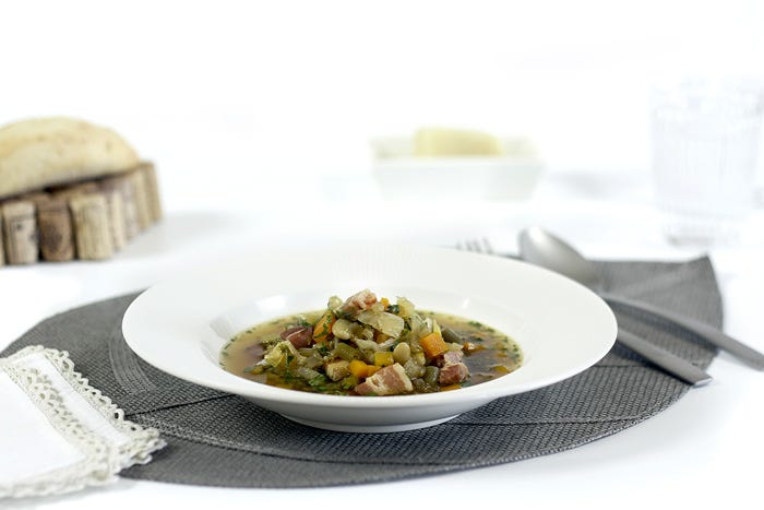 La sopa minestrone es mucho más que una sopa de verduras. Además de tener una proporción de legumbre –judías o alubias, generalmente–, los matices que le aportan el queso parmigiano y la panceta o papada, la convierten en un pecado venial en el que caer repetidamente durante el otoño e invierno.