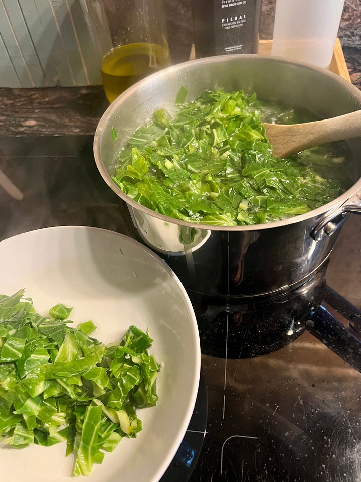 Se pueden sustituir por repollo liso o rizado —aunque el rizado tiene un huequito más grande en mi corazón—, acelgas, berros o espinacas.