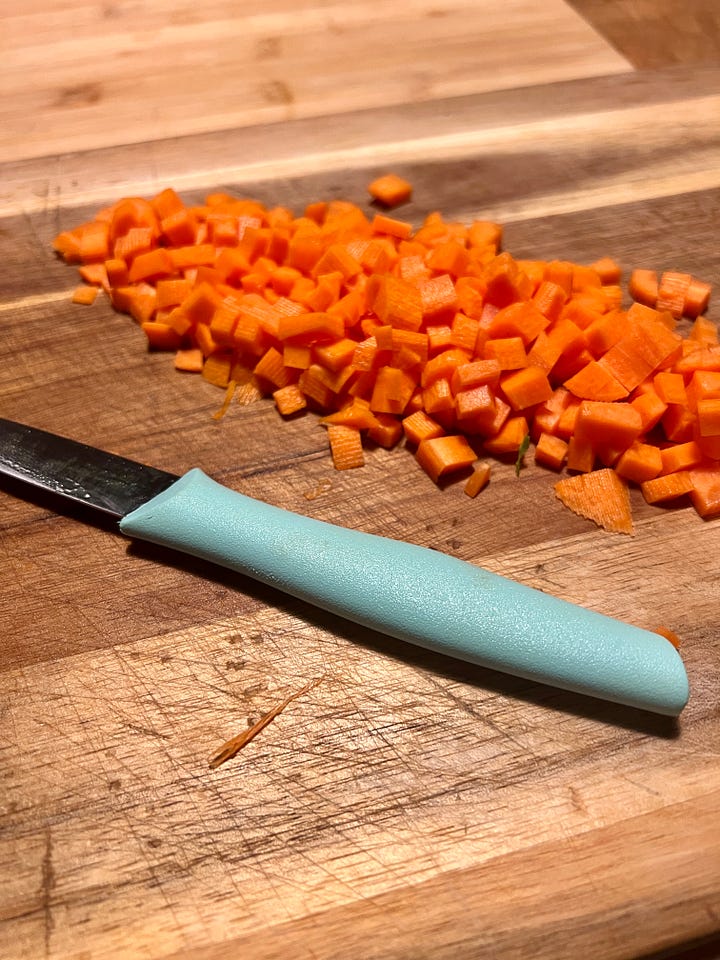 Pela la zanahoria y la patata, lávalas y sécalas.