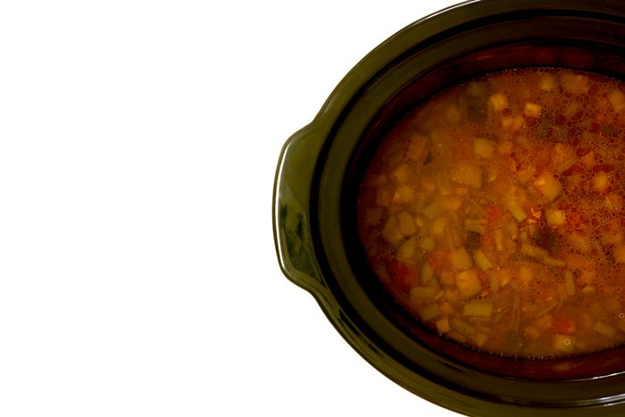 La pasta no funciona muy bien en slow cooker, tiende a quedar con una textura poco agradable. Por eso se cocina aparte y se añade al guiso al final.