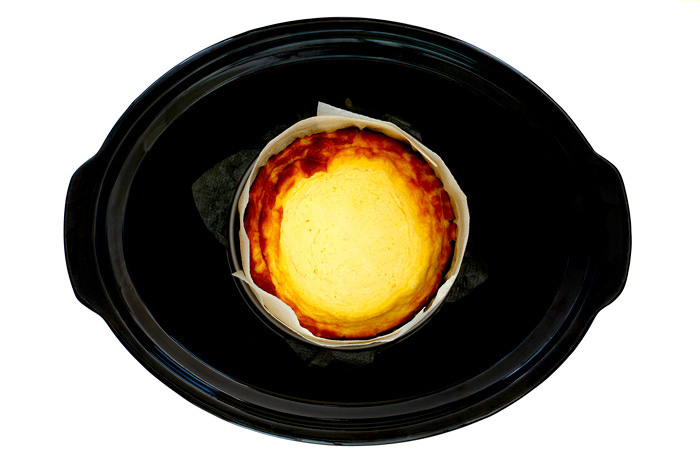 Esta tarta de queso con fruta de la pasión está hecha en un molde desmontable de 17 cm de diámetro dentro de un slow cooker de 8 litros. Si necesitas orientarte con los tamaños y medidas de los slow cookers, puedes consultar sobre el tema en este enlace.