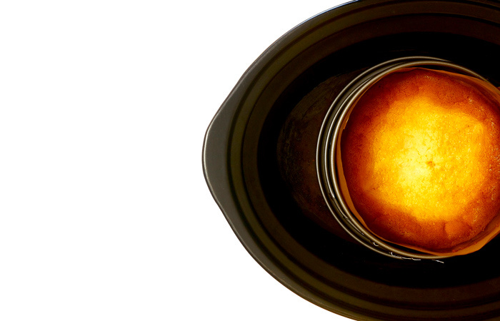 Las medidas de los ingredientes de esta tarta de queso japonesa están pensados para hacerla en un molde de 21 cm dentro de un slow cooker de 8 litros. Si tu crock pot no es tan grande y necesitas utilizar un molde más pequeño, simplemente divide las medidas proporcionadamente o haz la masa y cocina dos tartas en tandas.