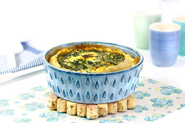 Puedes usar un molde desmontable para hacer la tarta pascualina o llevarlo a la mesa en un molde cerámico –debe ser apto para horno– si quieres una presentación más cuidada.