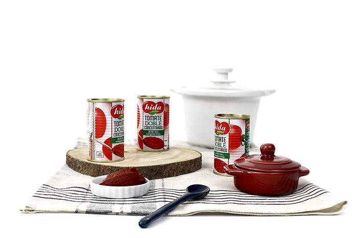 En la web de Mutti comentan que, para hacer un kilo de doble concentrado de tomate, se necesitan 5,5 kilos de tomate fresco. En la web de Hida, otra de las marcas que tienen este producto en su catálogo, nos hablan de que 1 gramo de tomate doble concentrado equivale a 5 gramos de tomate natural. Hacendado también tiene este producto, así como Cidacos o Hengstenberg, que lo comercializa en tubos de triple concentrado bajo el nombre Oro de Parma.