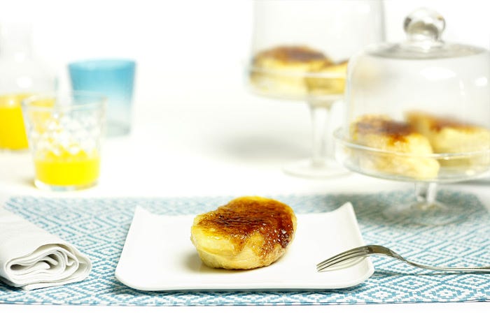 Cuando vayas a servirlas, espolvorea con azúcar y caramelízalas con un soplete o una pala para quemar azúcar.