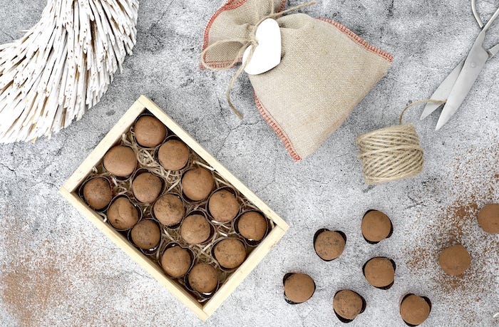 El recubrimiento clásico de las trufas es el cacao en polvo –no vale el cacao soluble para beber–, pero se puede recubrir también con coco rallado, praliné de almendra o avellana, o galletas speculoos pulverizadas. Una vez hechas, puedes colocar cada trufa en una pequeña cápsula para bombones, un detalles que quedará genial si vas a regalarlas.