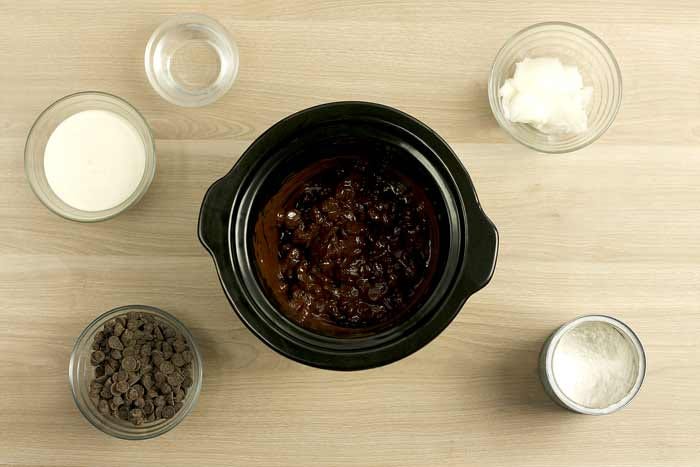 Pon el chocolate en el slow cooker sin tapar y vigila la cocción.