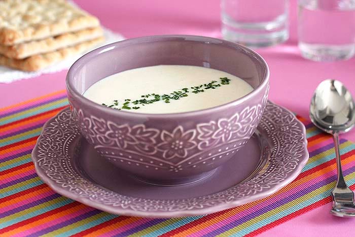 Mezcla la nata en el último momento, justo antes de servir, para que la vichyssoise dure más tiempo refrigerada. Si le añadimos la nata y la guardamos, su caducidad se acorta.