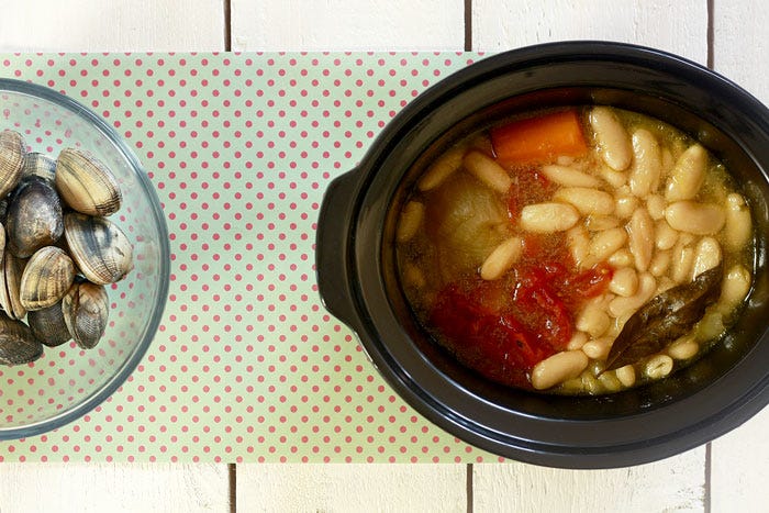 No pasa nada, vamos a comer legumbres fresquitas, ricas y bien aliñadas, y nos van a caer en el cuerpo como si fueran lechuga. Para eso tienes una crock pot en ese rincón de la encimera, ¿recuerdas? Durante los meses de calor nos va a venir de perlas para cocinar garbanzos, lentejas y judías durante la noche, al fresquito, y servirlas frías con vinagretas, aliños, conservas de pescados, verduras frescas y todo aquello que aporte vitaminas, oligocosas y te haga disfrutar en la mesa.