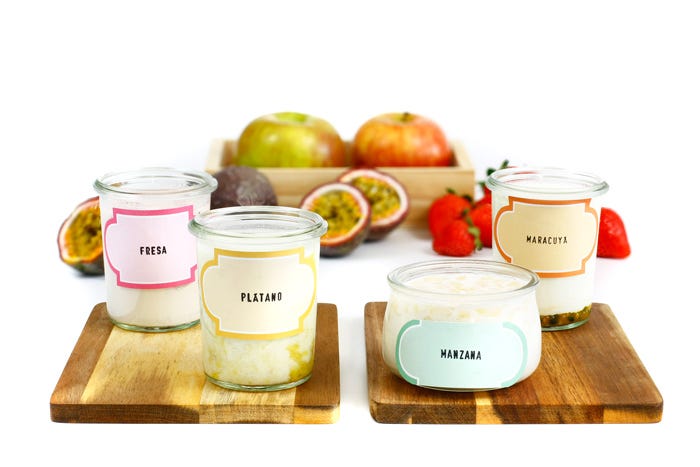 Para llegar a esta receta hice varias pruebas, incluso infusionando la leche con la fruta, un experimento que fue un absoluto desastre. Finalmente me quedo con este método, añadiendo las frutas a la leche caliente mezclada con el yogur que sirve de fermento. Las cantidades de fruta no están especificadas, para que puedas decidir si haces una tanda de yogures variados o de un mismo sabor. Como al final siempre terminamos comiéndonos todo lo que cae en el frutero, seguro que no importa que sobre alguna pieza.
