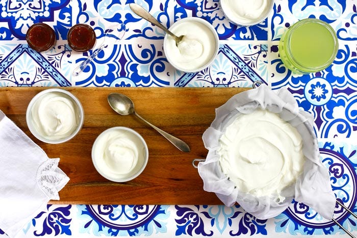Si te gusta el yogur, detectas con facilidad el sabor a nata añadida, que hace pesada la fórmula. Hacer yogur griego en casa es mucho más sencillo. Solo hay que partir de un yogur bien elaborado con leche fresca pasteurizada entera y utilizar yogur griego como fermento –es opcional, pero añade algo más de grasa a la mezcla antes de fermentar– al que luego extraemos el suero con paciencia.