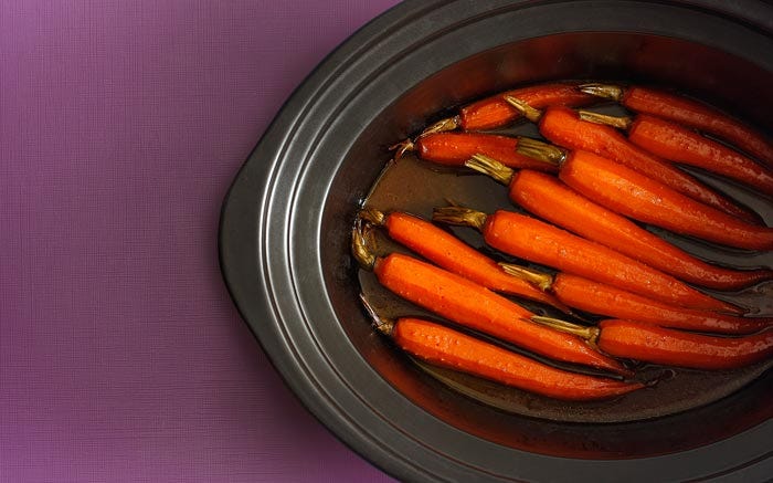 A partir de las dos horas de cocción, riega las zanahorias con la salsa cada media hora. La salsa estará cada vez más espesa y las zanahorias más brillantes. Si pasado este tiempo la salsa aún no está espesa, destapa un poco el slow cooker y continua la cocción hasta que espese.