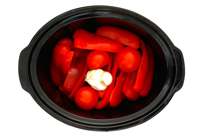 Cocina durante 3 horas en ALTA o hasta que los pimientos estén cocinados y la piel se desprenda fácilmente.